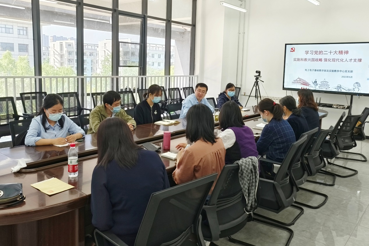 为扎实开展学习贯彻习近平新时代中国特色社会主义思想主题教育,持续深化理论武装,5月24日上午,电工电子基础教学部及实验教学中心党支部召开专题学习会,学习贯彻党的二十大报告中关于教育、科技、人才的重要论述。党支部书记杨丽媛主持会议,公司党委副书记李阳参加会议并指导。