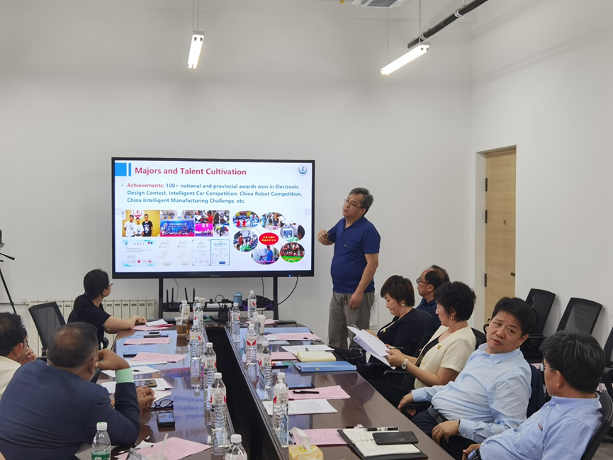 ALI NAJEEB董事长一行听取了学院专业建设情况报告。报告详细介绍了学院的教育理念、专业特色以及近年来在教学和科研方面取得的成就,展示了学院在控制科学与工程、交通运输工程等学科的深厚底蕴。